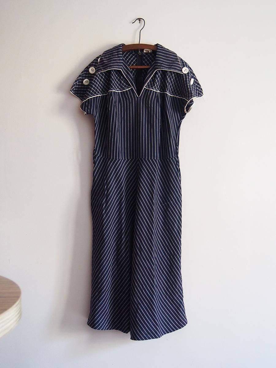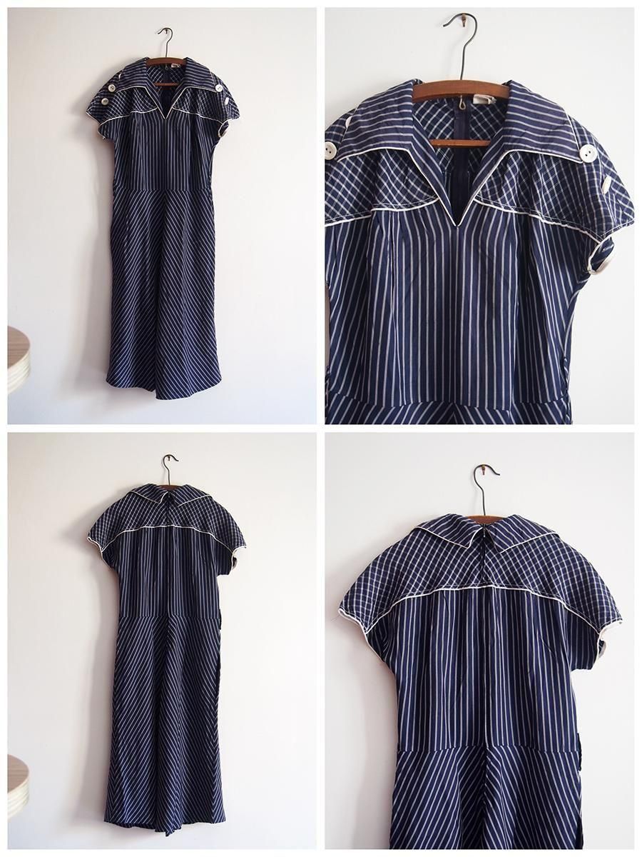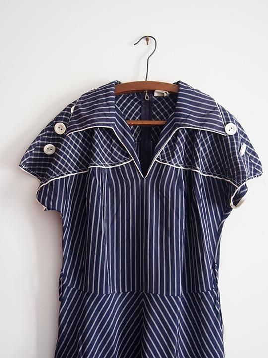 France 1960's vintage printed dress (navy ¡ß white) / ¥Õ¥é¥ó¥¹ 1960ǯÂå ¥ô¥£¥ó¥Æ¡¼¥¸ ¥×¥ê¥ó¥ÈÊÁ¥Õ¥ì¥ó¥Á¥¹¥ê¡¼¥Ö¥É¥ì¥¹ (¥Í¥¤¥Ó¡¼ ¡ß Çò)