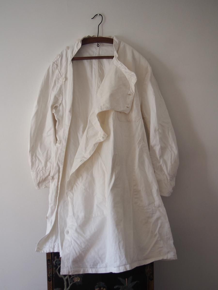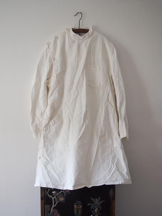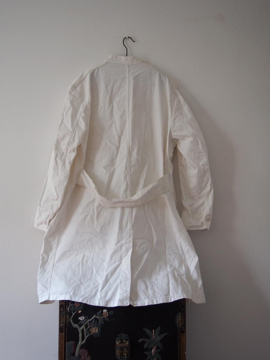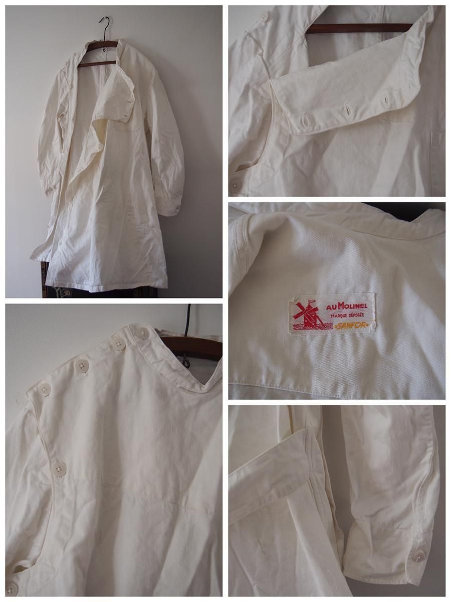 France 1950's vintage "AU MOLINEL" atelier coat (white) / フランス 1950年代 ヴィンテージ ノーカラー・アトリエ・コート (白)