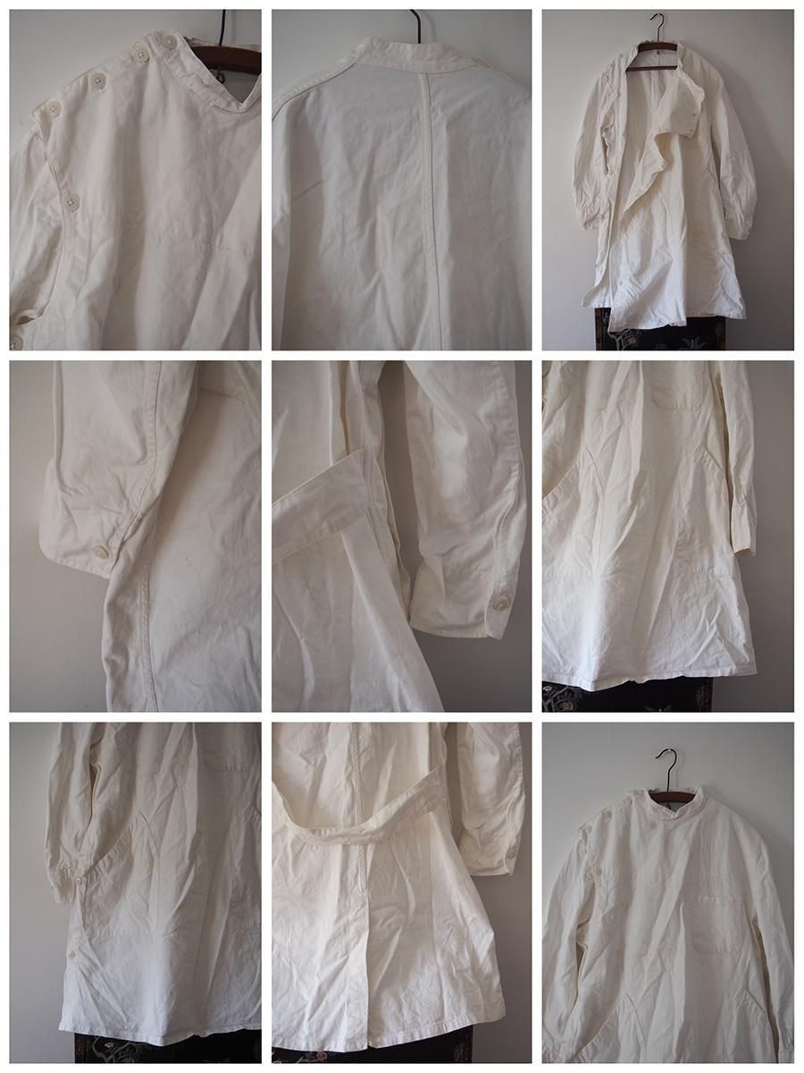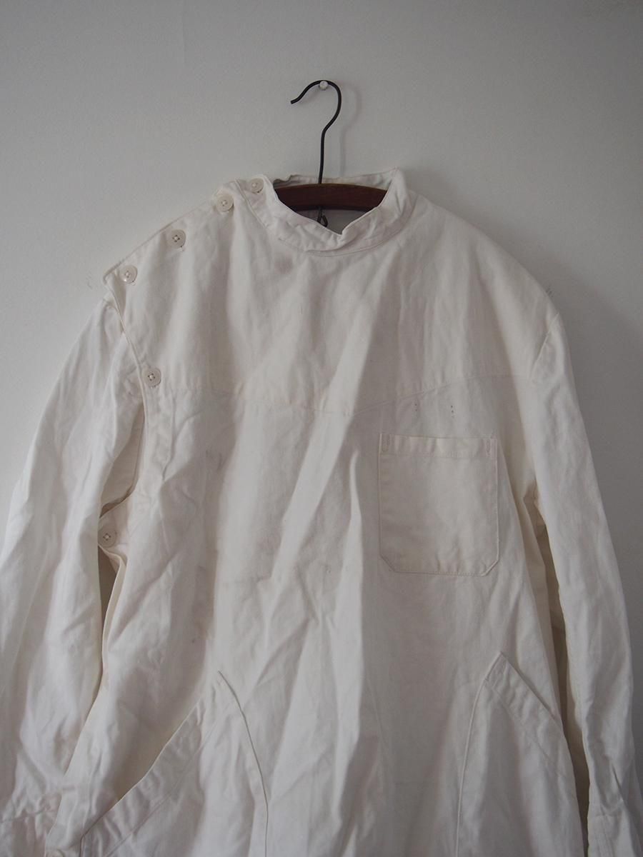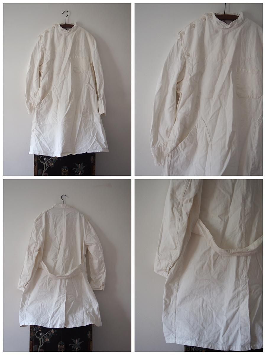 France 1950's vintage "AU MOLINEL" atelier coat (white) / フランス 1950年代 ヴィンテージ ノーカラー・アトリエ・コート (白)