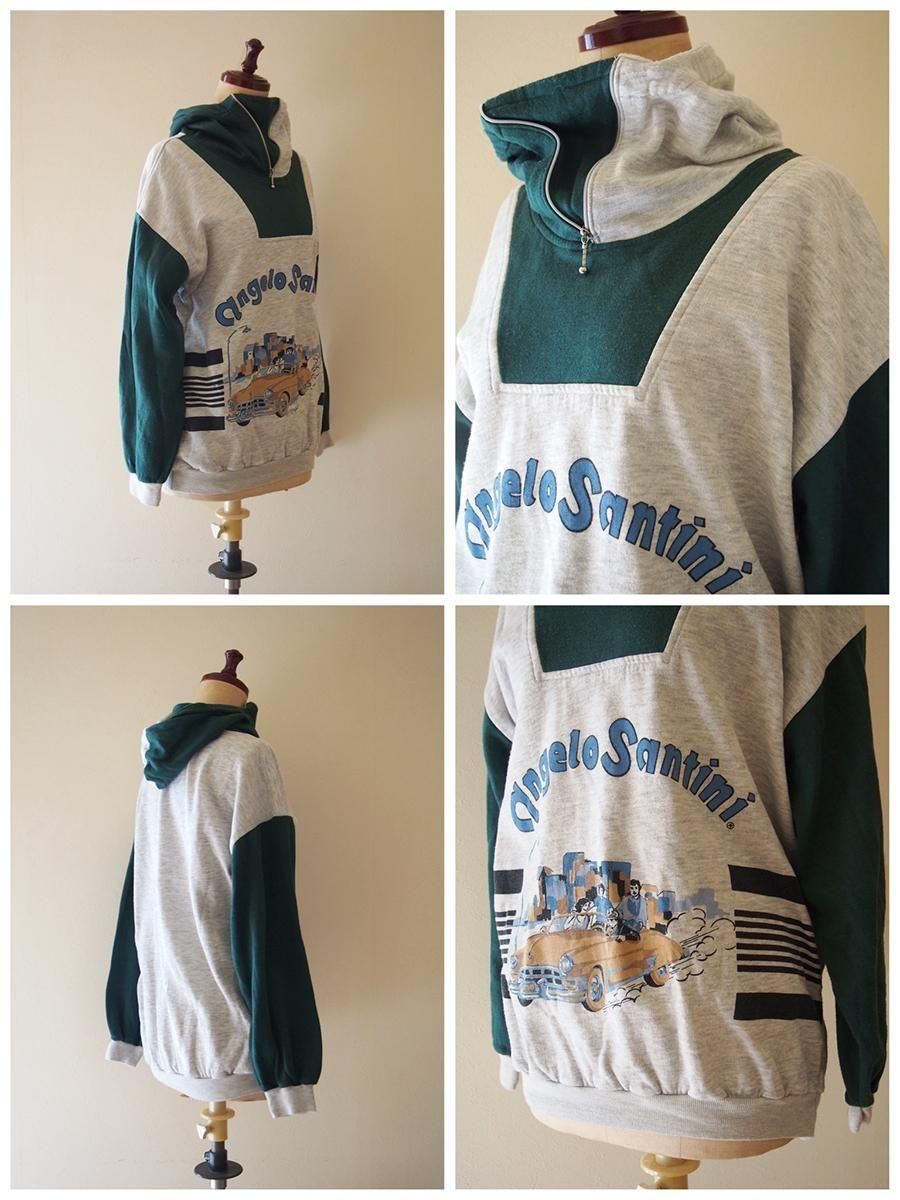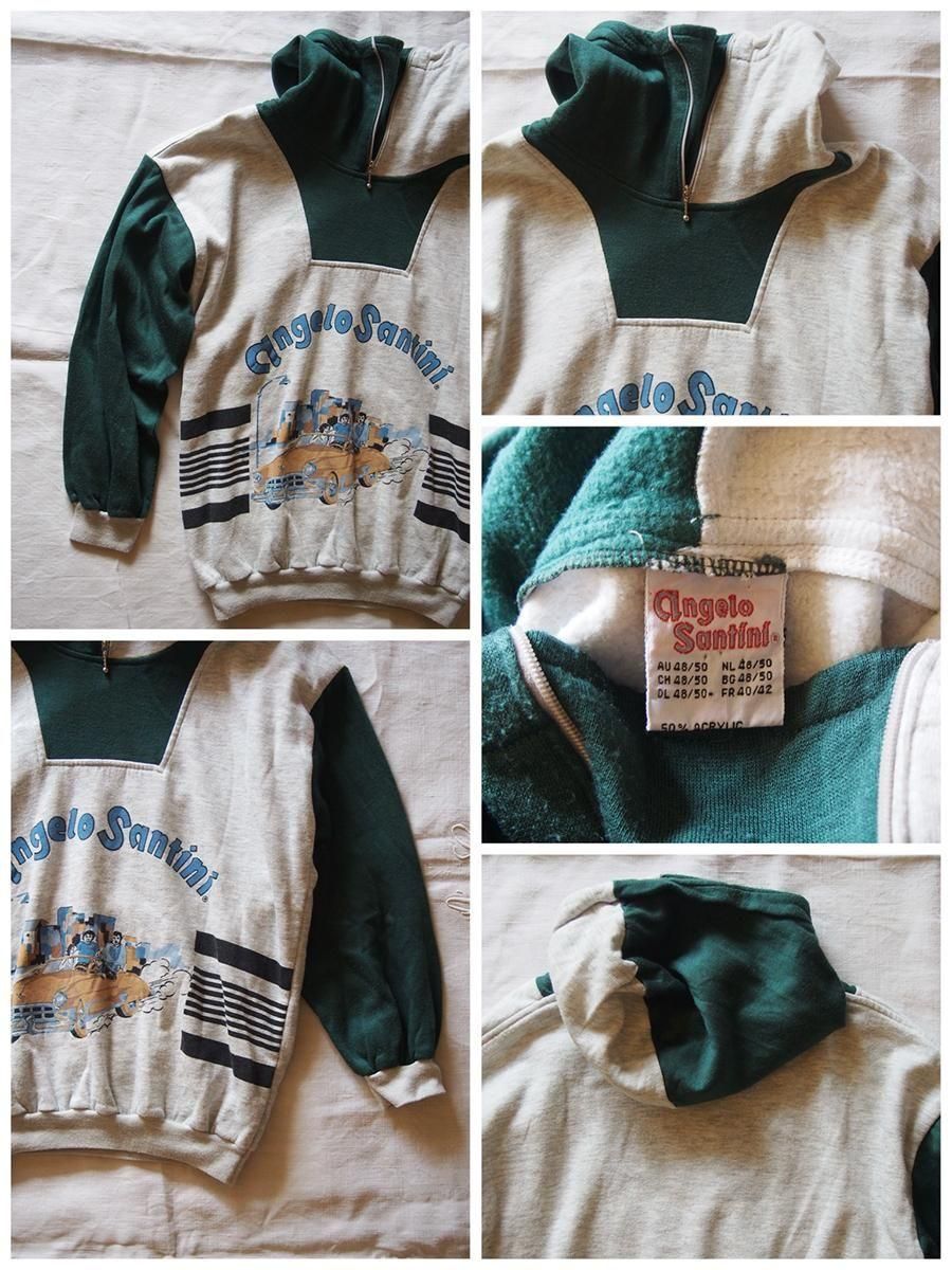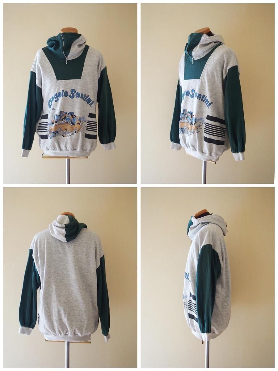 Europe 1980's vintage "Angelo Santini" hoodie / ユーロ 1980年代 ヴィンテージ スウェットパーカー(グリーン×グレー)