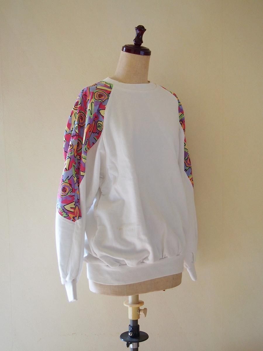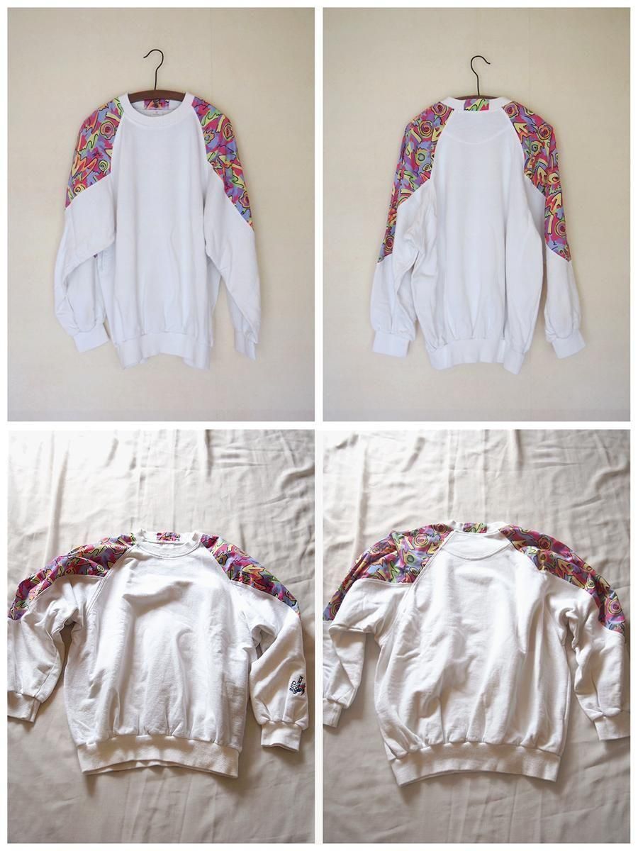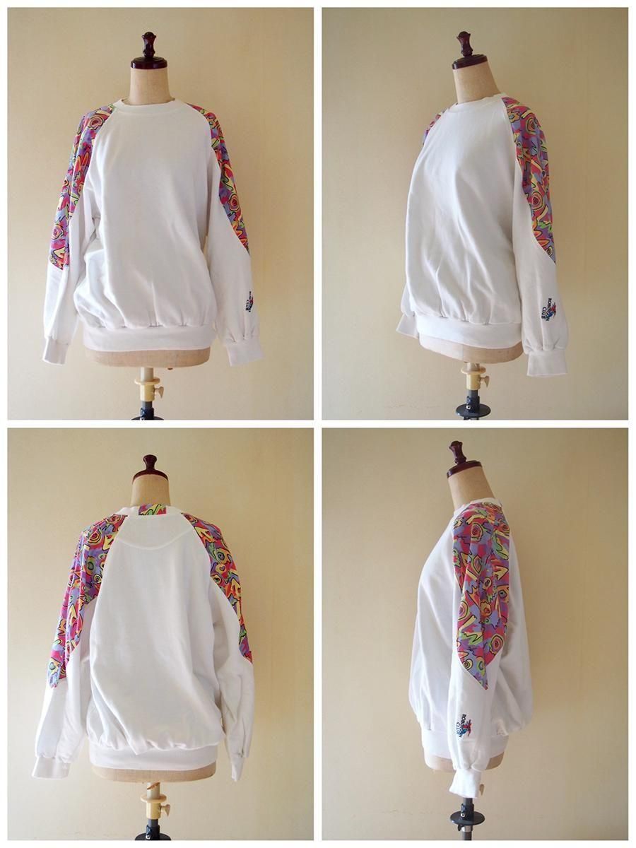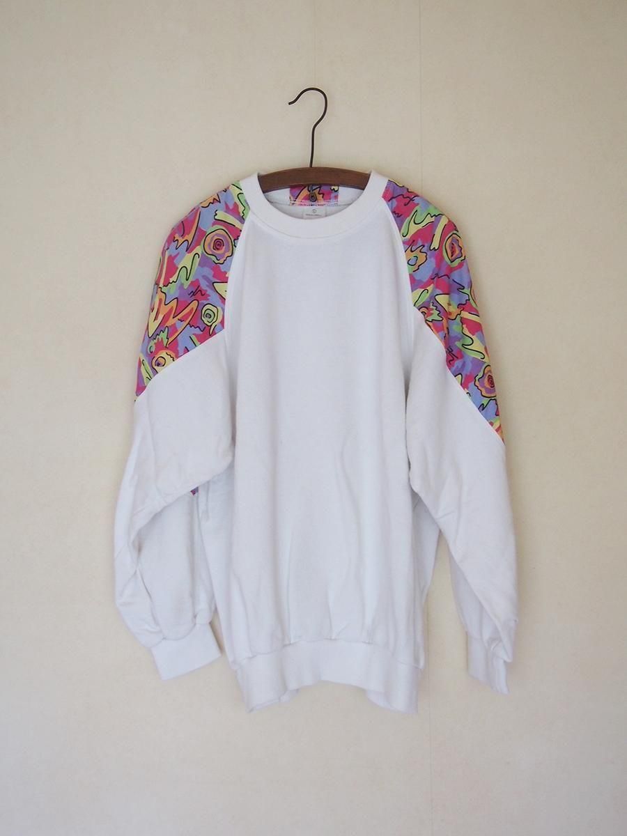 Europe 1980's vintage Panelled sweatshirt / ユーロ 1980年代 ヴィンテージ パネルスウェットシャツ(白×マルチカラー)