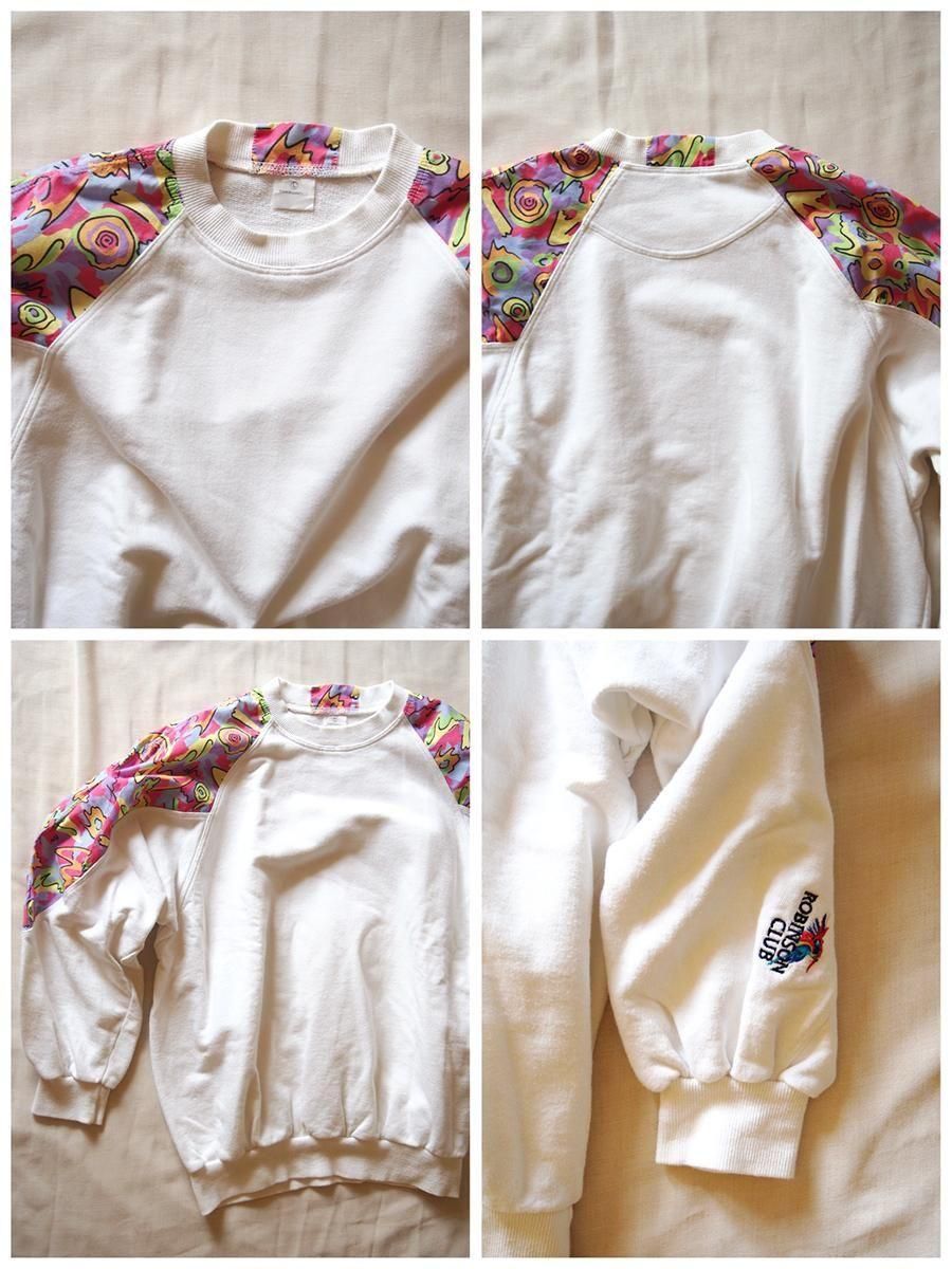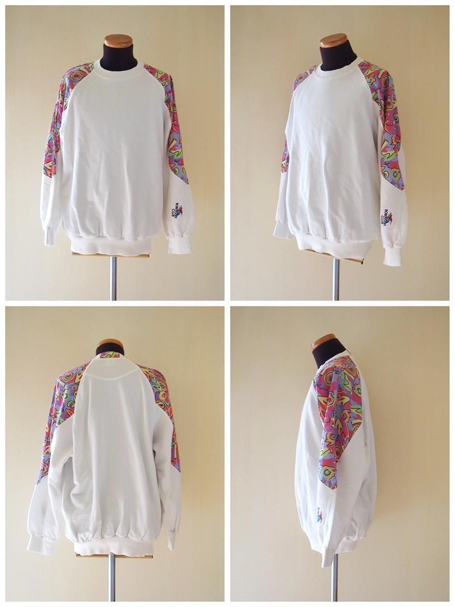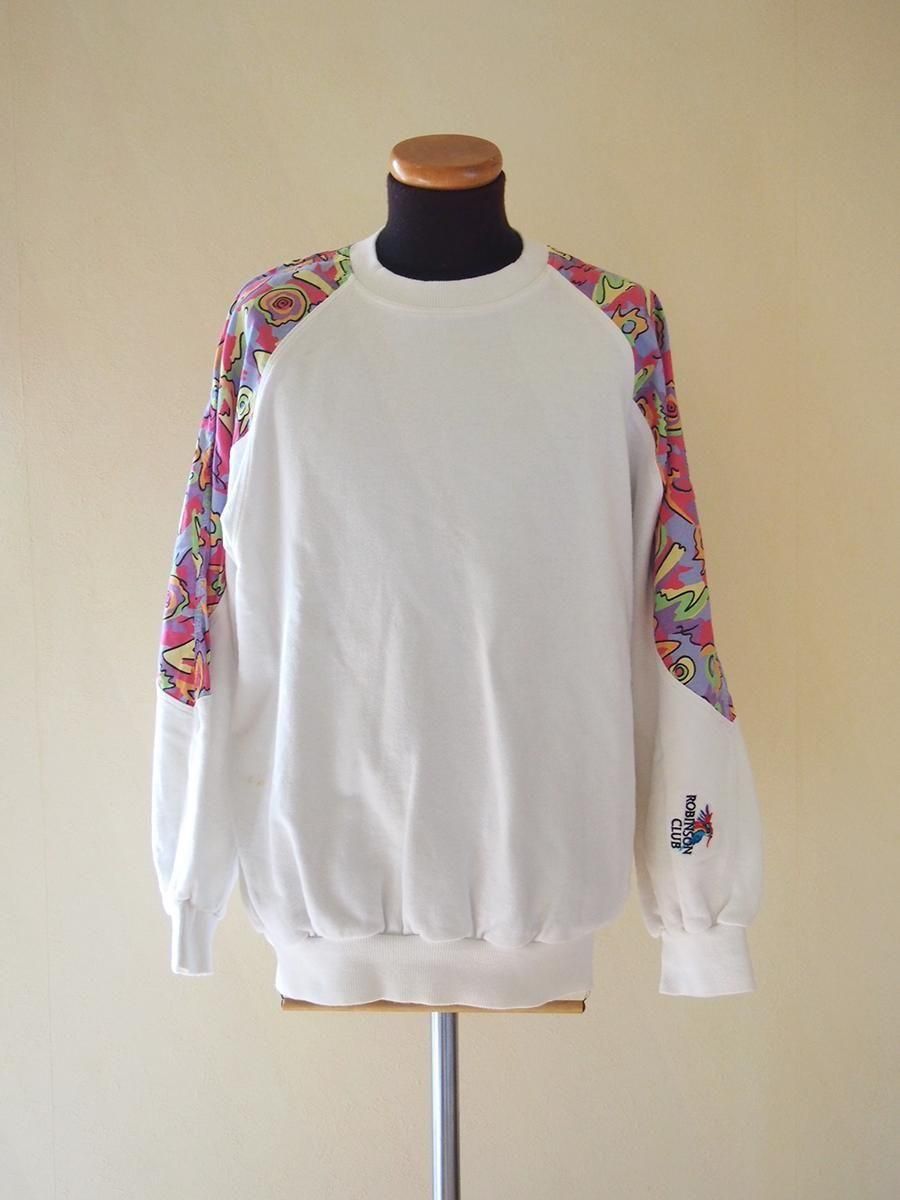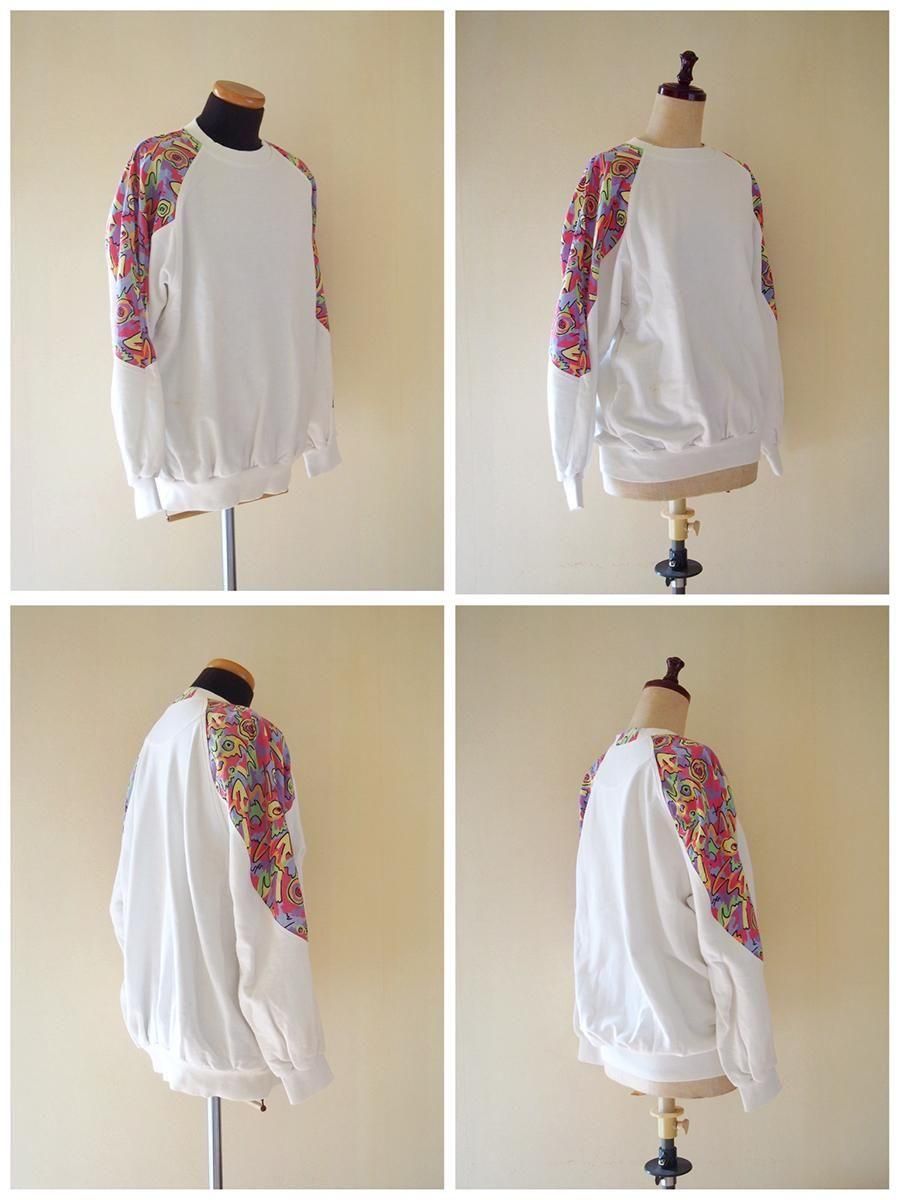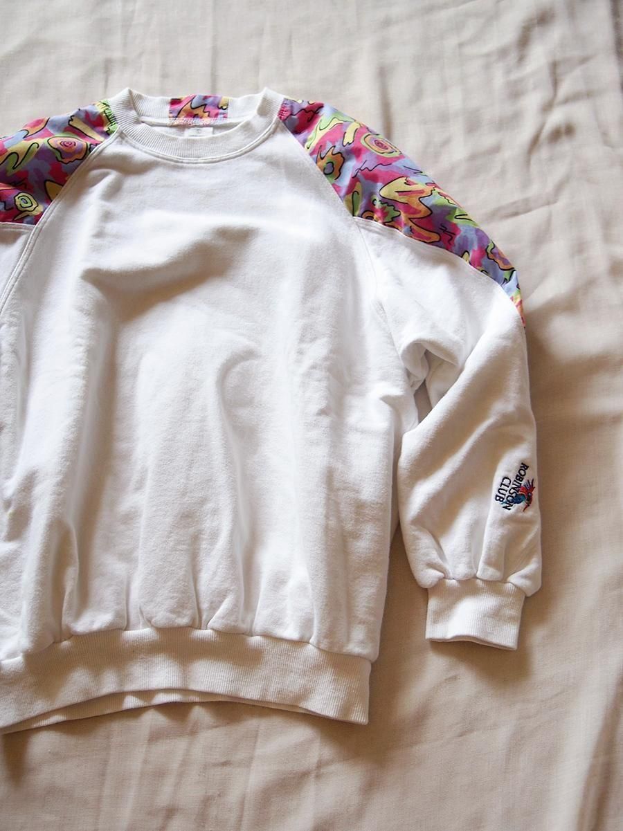 Europe 1980's vintage Panelled sweatshirt / ユーロ 1980年代 ヴィンテージ パネルスウェットシャツ(白×マルチカラー)