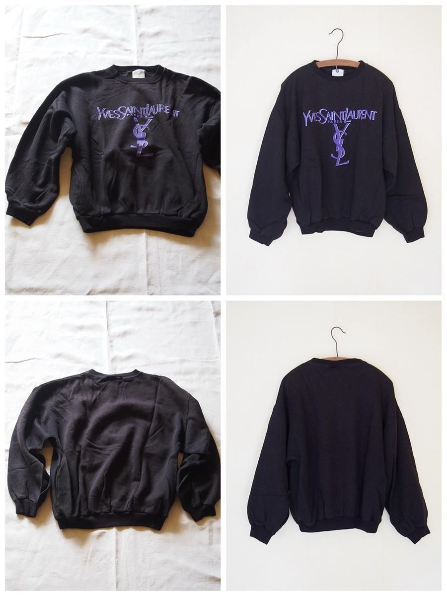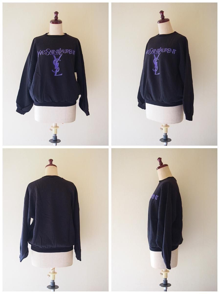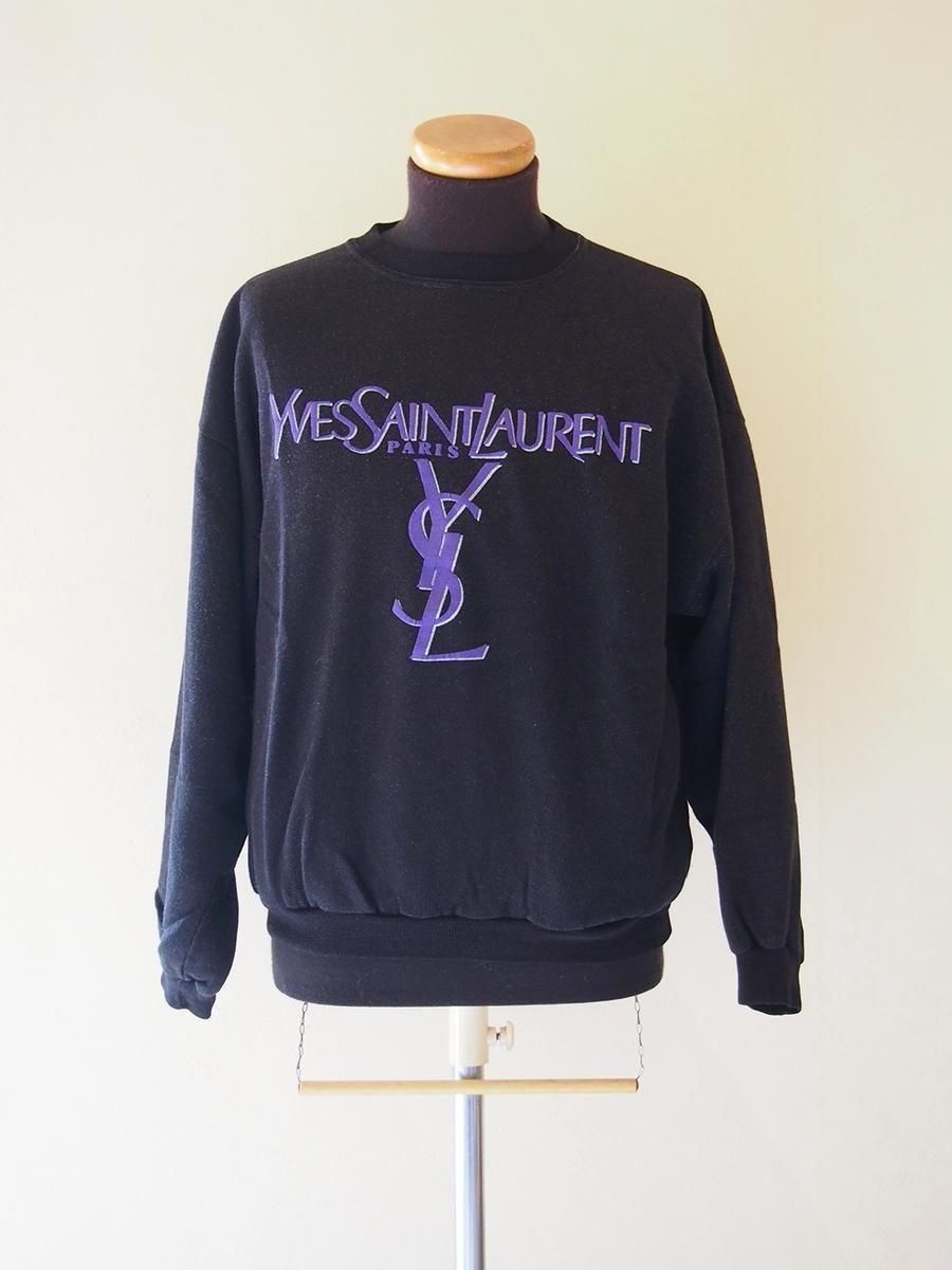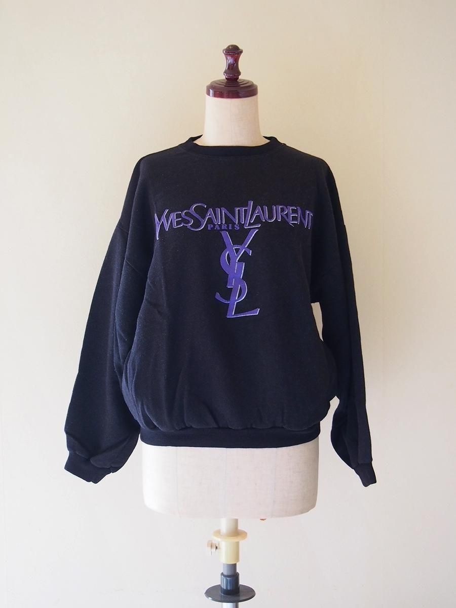 Europe 1980's vintage "YVES SAINT LAURENT" printed sweatshirt / ユーロ 1980年代 ヴィンテージ スウェットシャツ(黒×パープル)