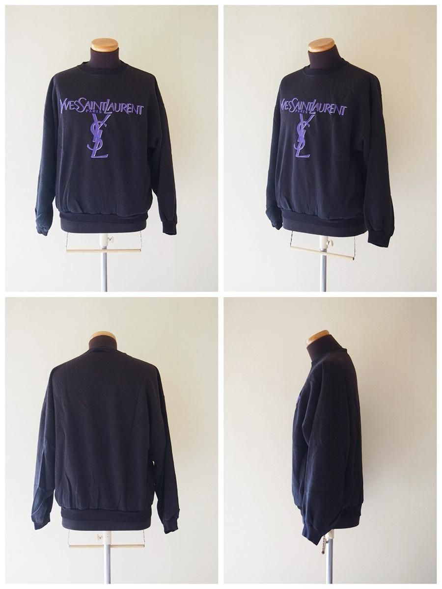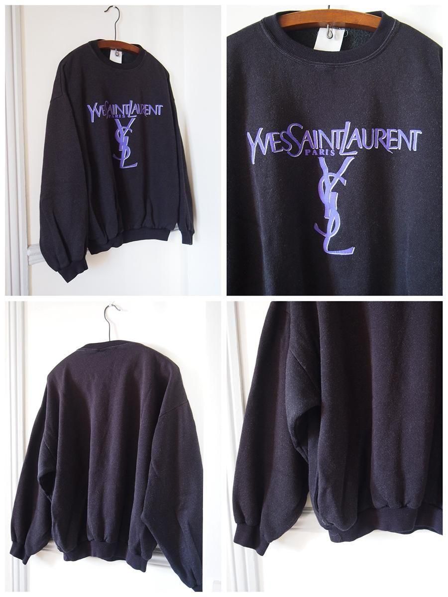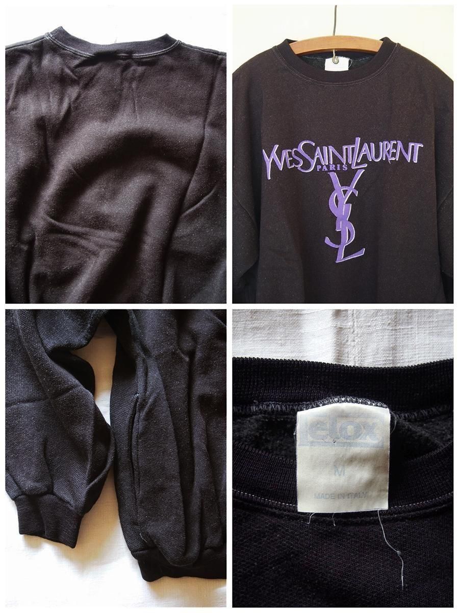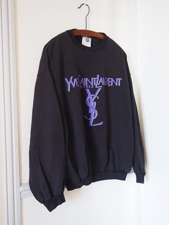 Europe 1980's vintage "YVES SAINT LAURENT" printed sweatshirt / ユーロ 1980年代 ヴィンテージ スウェットシャツ(黒×パープル)